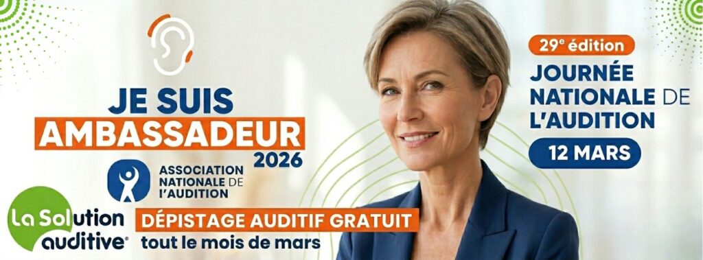 Ce mois de mars, nos 8 centres La Solution Auditive participent activement à la campagne nationale organisée par l’Association Nationale de l’Audition (ANA), à l’occasion de la 29ᵉ édition de la Journée Nationale de l’Audition, célébrée le 12 mars 2026. Un événement incontournable pour faire de votre santé auditive une priorité !